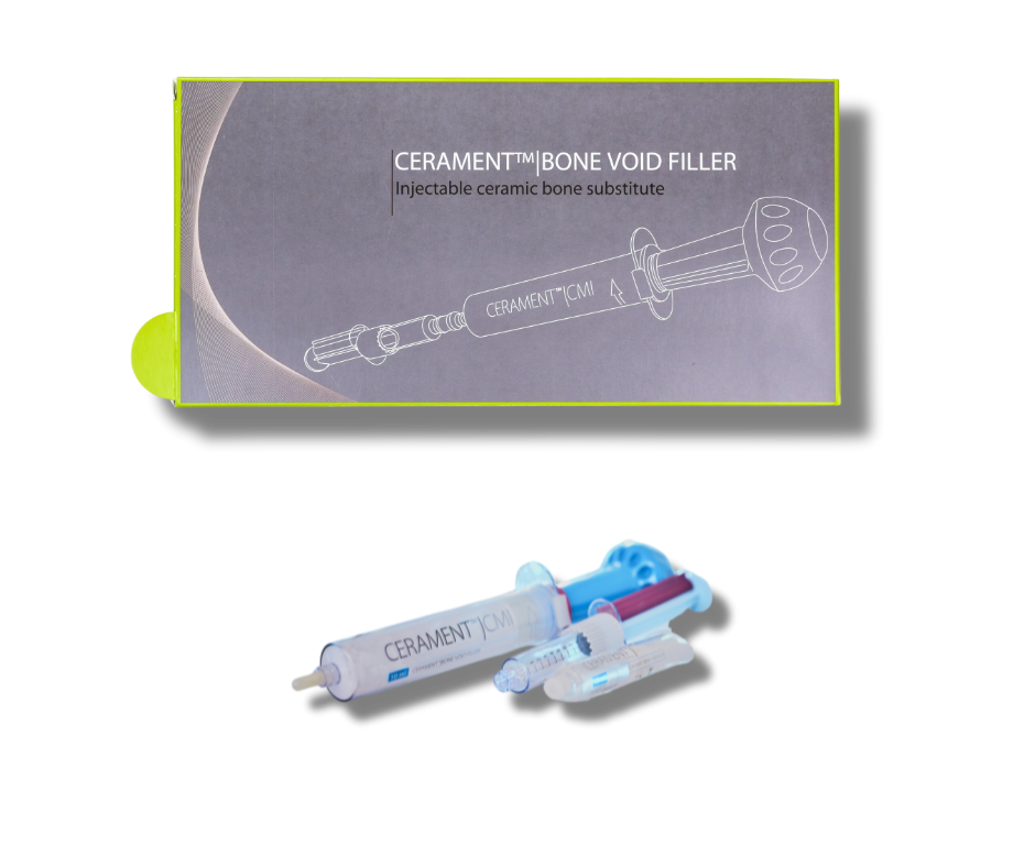 El Cerament Bone Void Filler está compuesto por una combinación de fosfato de calcio y cemento acrílico. Este material se inyecta en el área afectada del hueso, donde se solidifica y se integra con el hueso circundante. A medida que el material se endurece, proporciona soporte estructural al hueso y ayuda a estimular el crecimiento óseo.