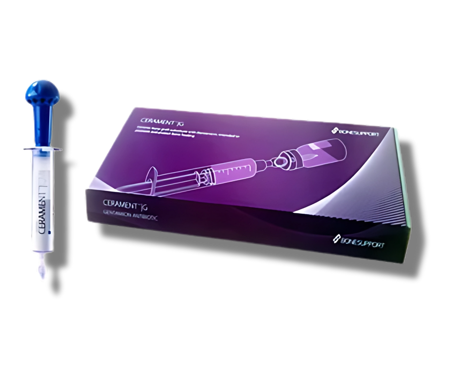 CERAMENT G es un relleno de huecos óseos sintético inyectable compuesto por un 40% de hidroxiapatita, un 60% de sulfato de calcio y sulfato de gentamicina. Se reabsorbe al mismo ritmo que se forma el hueso, gracias a su proporción única de ingredientes. La hidroxiapatita promueve el crecimiento óseo, mientras que el sulfato de calcio actúa como vehículo reabsorbible. La gentamicina protege contra la colonización bacteriana. CERAMENT G permite a los cirujanos tratar defectos óseos en un solo procedimiento, con resultados clínicos comprobados de bajas tasas de fracturas e infecciones.